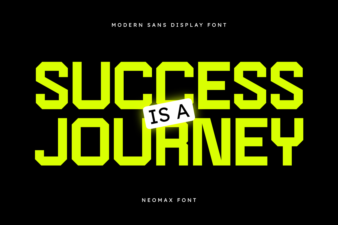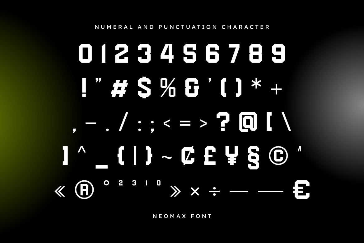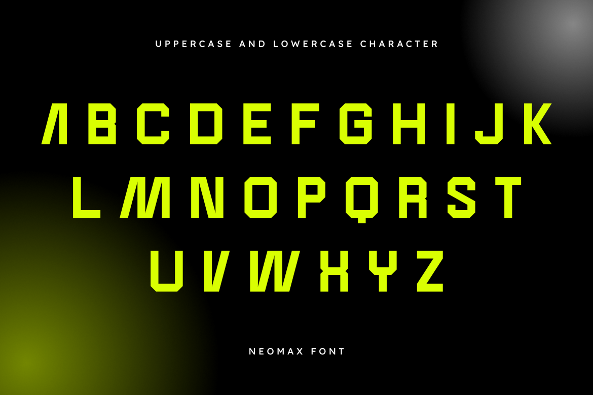 NEOMAX is a Bold, Geometric, and Ultra-Modern Display Sans Serif font. With its strong presence, sharp angles, and powerful, condensed letterforms, NEOMAX is designed to capture attention and deliver a high-impact, futuristic message. Its striking and dynamic structure makes it the perfect choice for projects demanding a bold, contemporary, and cutting-edge aesthetic.
