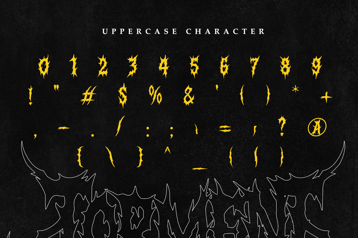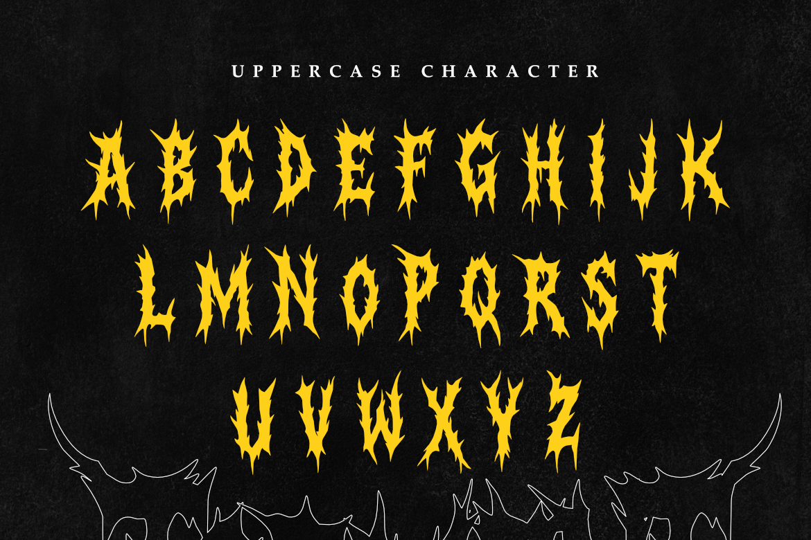 This hand-drawn style font brings out the authentic brutality and organic flow found in real death metal typography. Every curve and spike is crafted to embody chaos, intensity, and rebellion — ideal for designers who want to capture the true essence of extreme music.