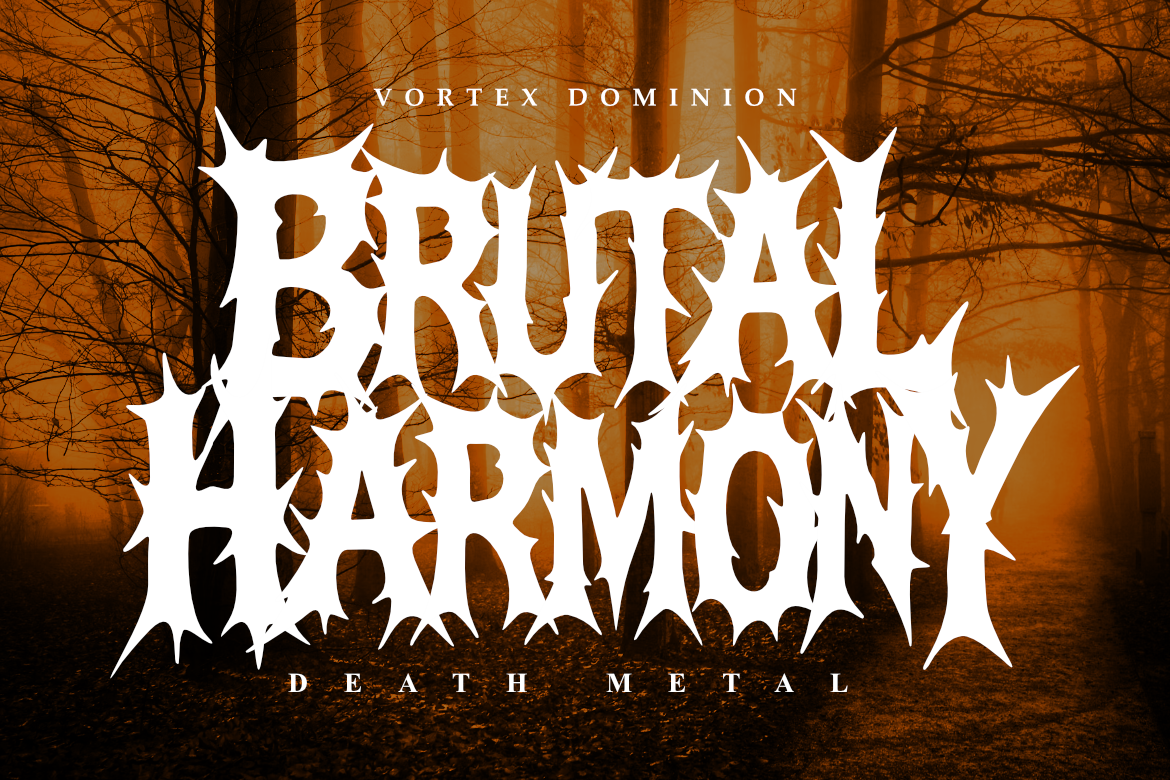 Perfectly crafted for underground metal bands, album artwork, horror-themed designs, and extreme branding projects, Vortex Dominion delivers a menacing yet natural look — inspired by the visceral textures and intensity of death metal aesthetics.