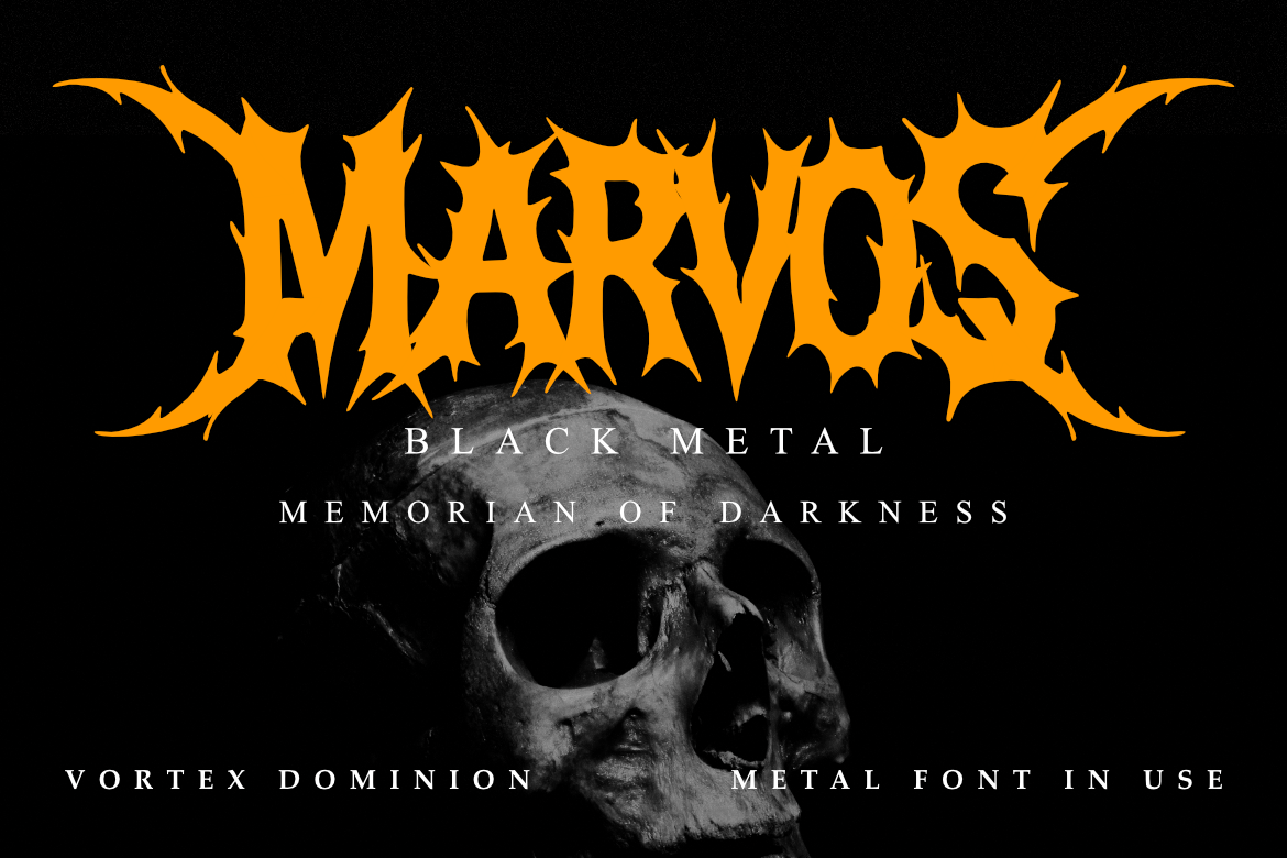 Vortex Dominion a brutal and chaotic Death Metal Font that embodies raw energy and dark aggression. Designed to capture the true essence of extreme metal, this typeface features organic, thorn-like letterforms that tear through the silence and dominate any visual composition.
